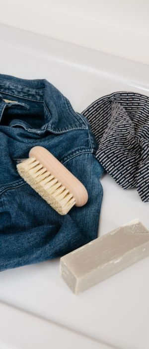 Pour vos tissus, appliquez du savon détachant. Alternativement, saupoudrez du bicarbonate ou du percarbonate de soude directement sur la tache. Laissez agir, puis frottez délicatement avant de rincer.