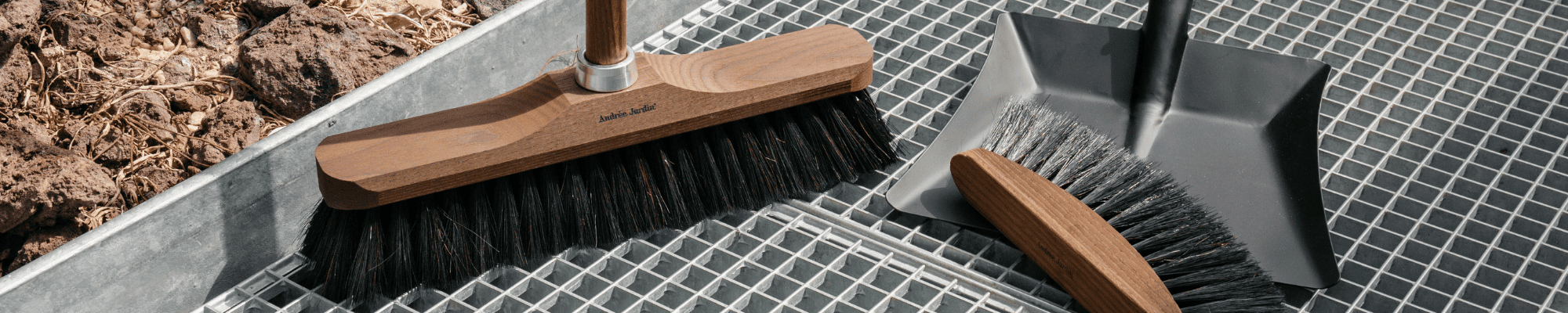 Rincez la tête à l’eau claire après usage, laissez sécher à l’ombre. À l’abri de la pluie et des UV (abri de jardin, garage ou sous un auvent). L’humidité peut altérer la taille du bois ; il est donc important de conserver votre balai dans un endroit sec.