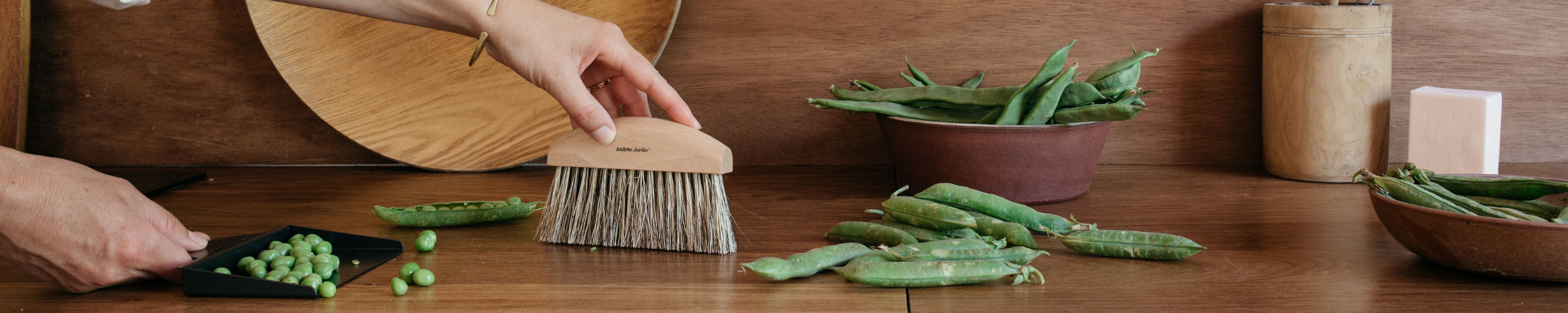 Andrée Jardin table crumb collectors have been handcrafted in France since 1947, using natural fibers for an environmentally friendly alternative to ineffective plastic models. Each table dustpan benefits from certified French know-how, guaranteeing a product that is both robust and effective for quick cleaning after your meals. This crumb collector combines the practical aspect of cleaning with the aesthetics of design, allowing this table accessory to sit elegantly around your table or bread basket .