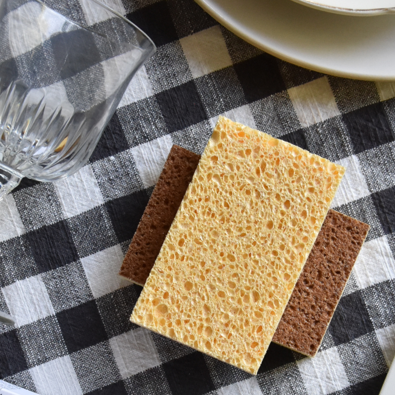 La face douce en cellulose de pâte de bois est adaptée aux surfaces délicates, tandis que la face abrasive, composée de coques de noix et de noyaux de fruits finement broyés, permet de récurer efficacement sans rayer.